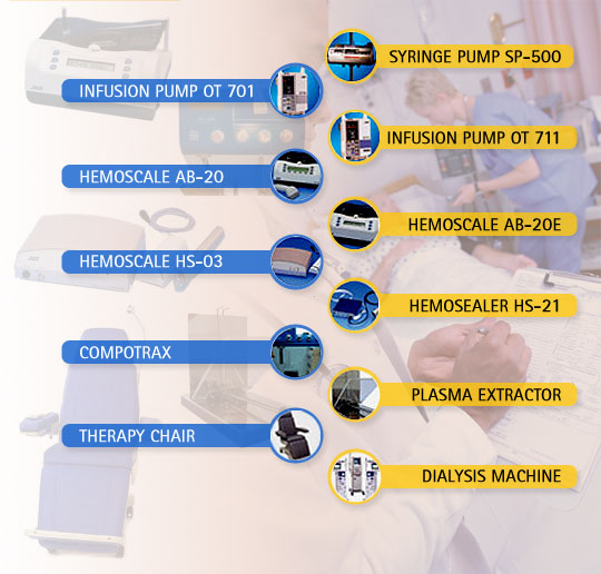 Therapy Chair, Infusion Pump, Syringe Pump to Hemoscale,