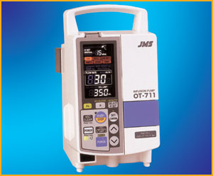 JMS Infusion pump (OT-711) is a functional infusion pump where highly accurate infusion of +/- 3% is attained using JMS Special Set. It is equipped wit a variety of functions such as Gamma Infusion Set-up Function, Bolus Function and Safety Function to monitor the internal pressure of the tube.